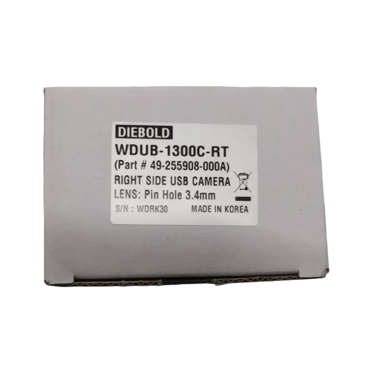 Diebold WDUB-13DDC-RT Micro Camera – Original New, Τύπος Συνδετήρα USB Δεξιάς Πλευράς. Αυτή η ειδική κάμερα ATM είναι ένα γνήσιο εξάρτημα Diebold, που αναγνωρίζεται από τον αριθμό εξαρτήματος 49255908000A και τον σειριακό αριθμό WDRI300095, εξασφαλίζοντας πρωτοτυπία και διασφάλιση ποιότητας.